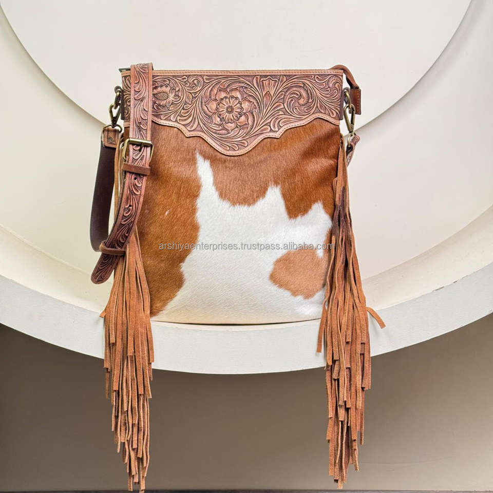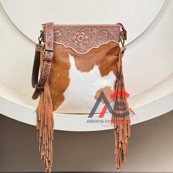 Product name:Hand Tooled Cowhide Leather Fringe Crossbody Bag
