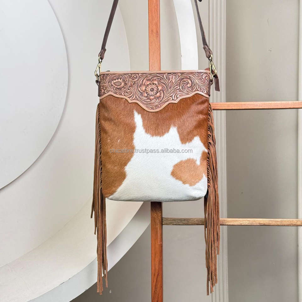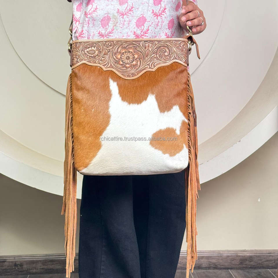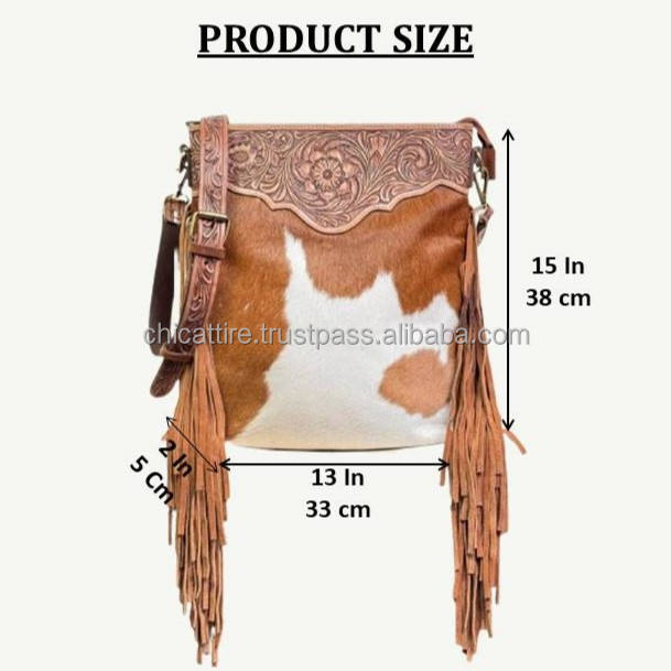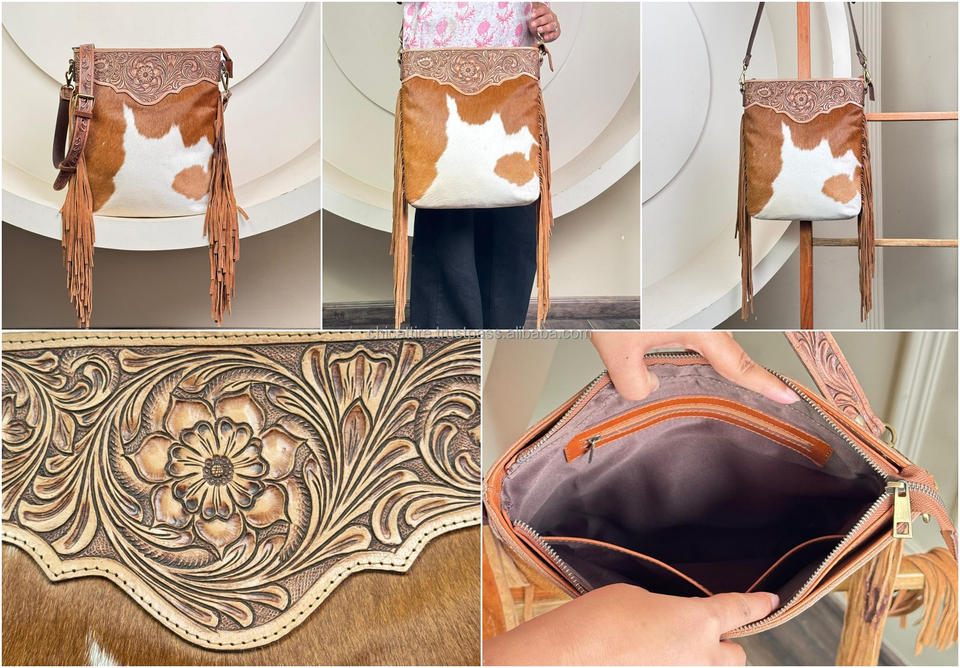 Product name:Hand Tooled Cowhide Leather Fringe Crossbody Bag