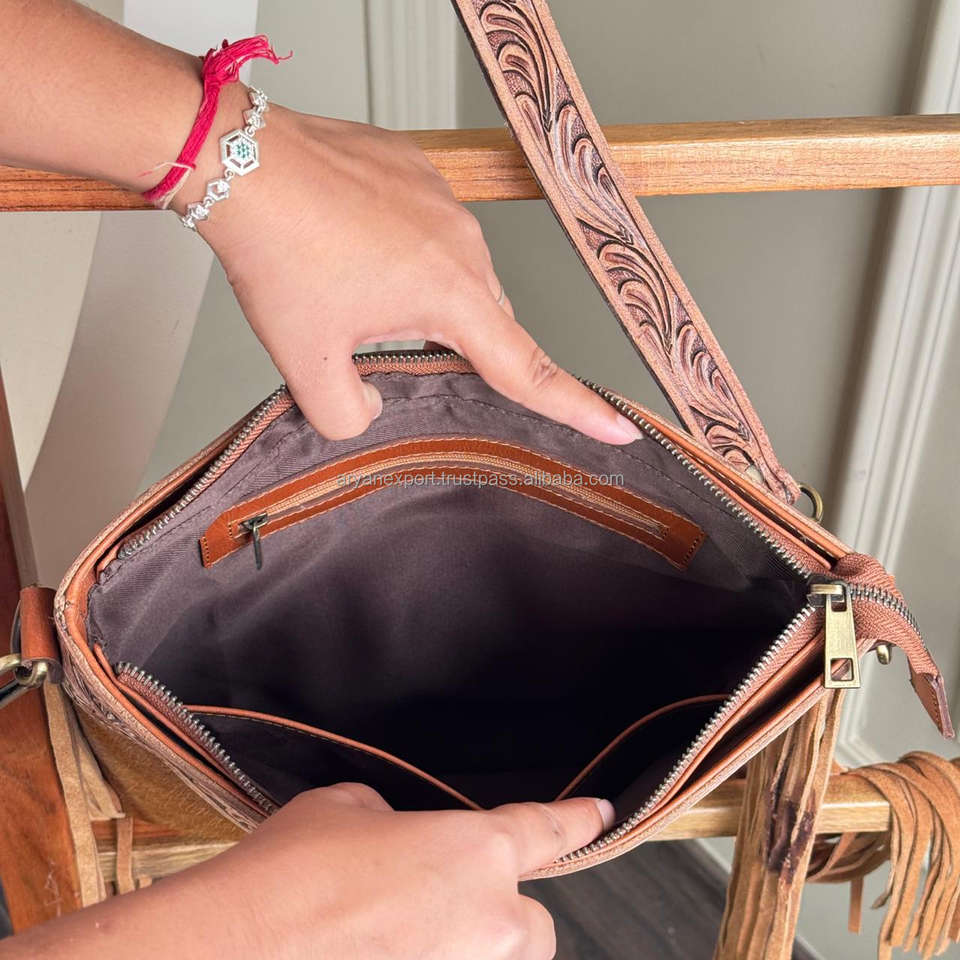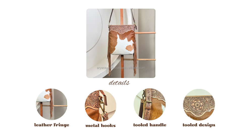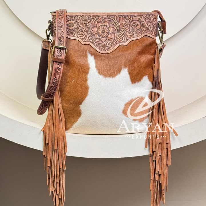 Product name:Hand Tooled Cowhide Leather Fringe Crossbody Bag