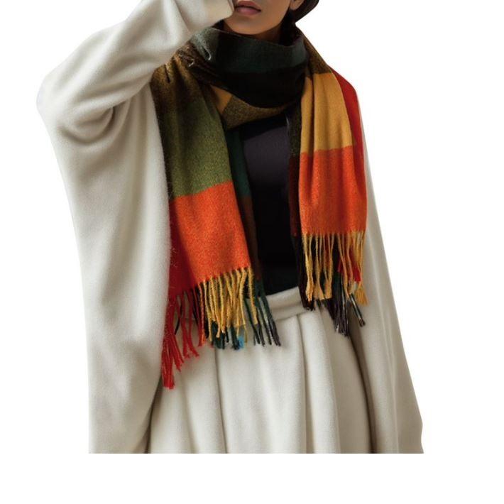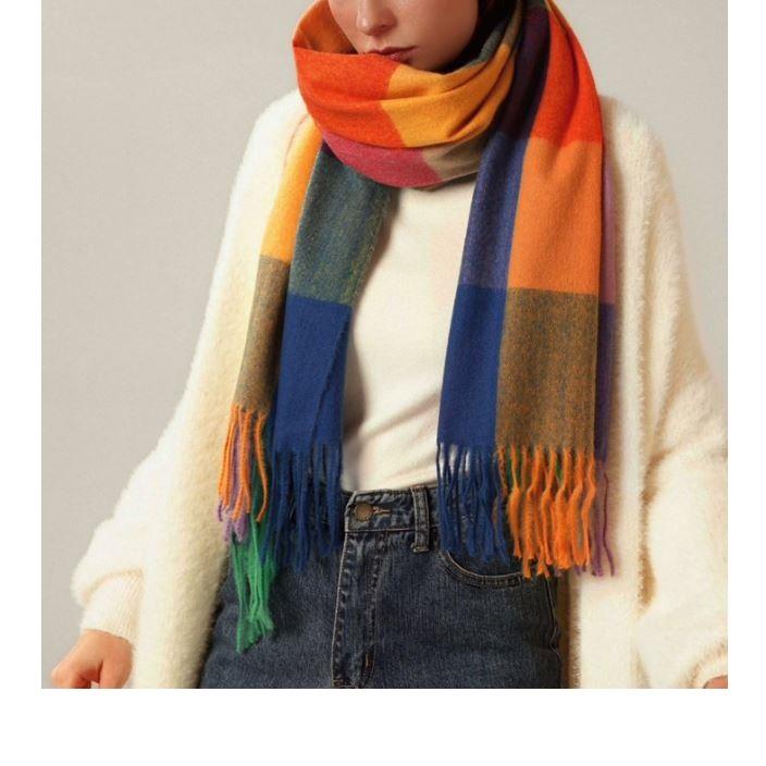 Fashion Lady Warm Long Pure Color Argyle Pattern Oversized Shawl Knitting Cotton Autumn Scarf Women's Customizable Supplier BD