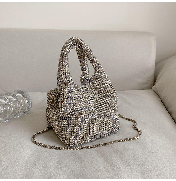 Fashion Large Capacity Handbags Bling Bling Rhinestone Chain Crossbody Bags Bucket Bags for Women Casual