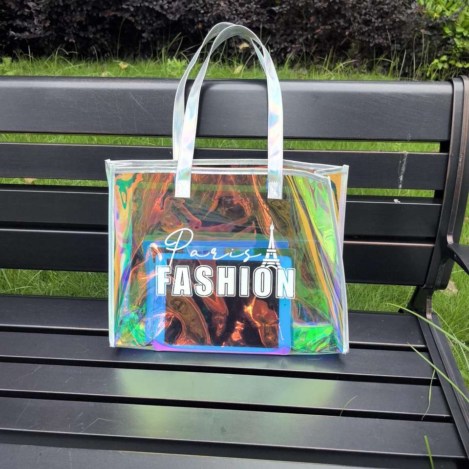 Fashion Large Capacity Women Shoulder Handbag PVC Laser Travel Beach Bag Printed Logo Shopping Tote Bag for Women