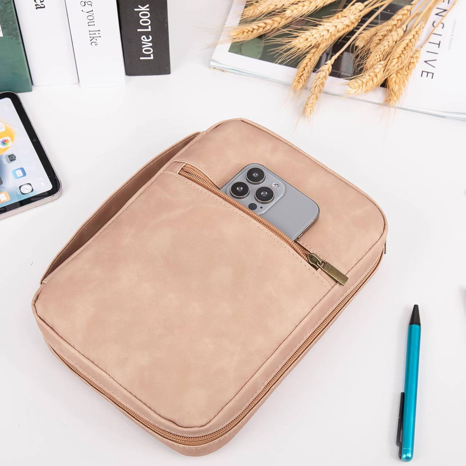 TD Luxury Classic XL Bible Case Eco-Friendly Faux Leather Durable PU Zipper Closure Simple Style Protective Bag for Outdoor Use