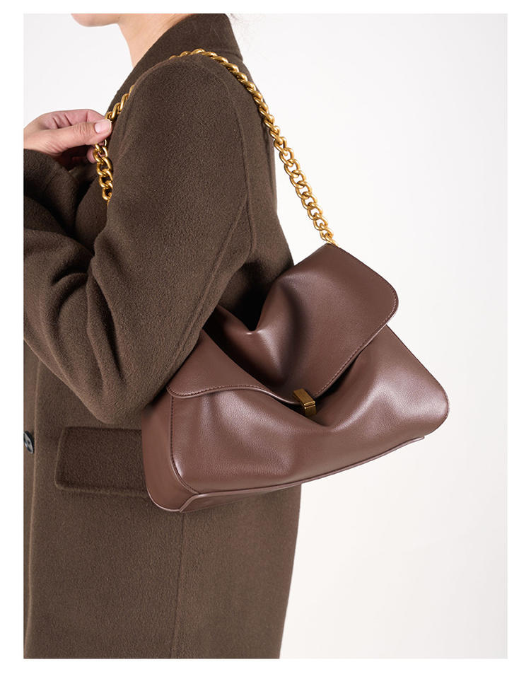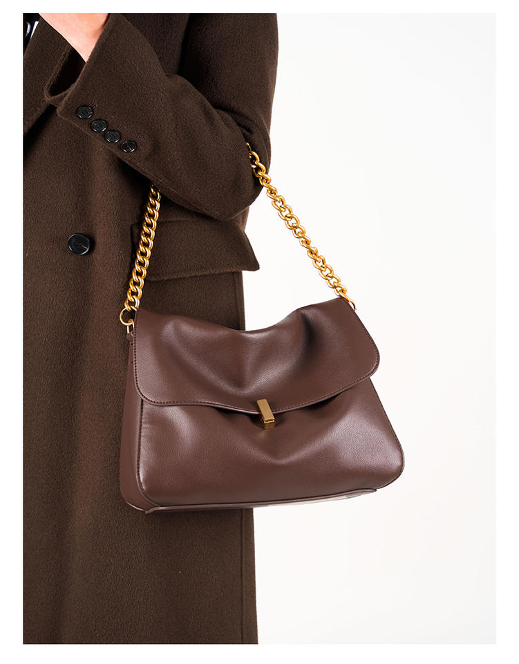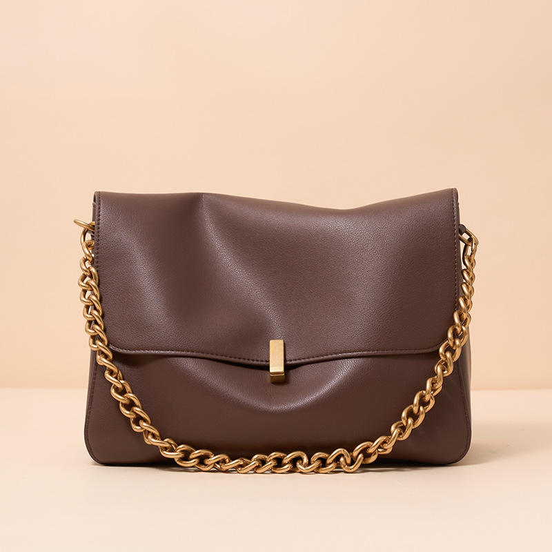 Fashion Large Size Khaki Underarm One Shoulder Bags for Women Luxury Unique Leather Plain Crossbody Bags with Gold Chain