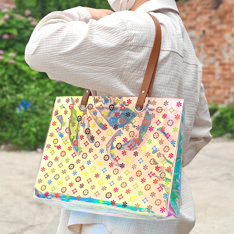 Fashion Laser PVC Women Shoulder Handbag High End Customized PVC Travel Beach Bag Waterproof Durable Grocery Bag for Outdoor