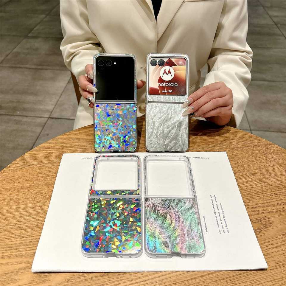 Fashion Laser Splinter Shiny Feather Yarn Hard PC Protective Case for Motorola Moto Razr 60 50 Ultra