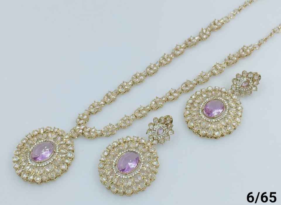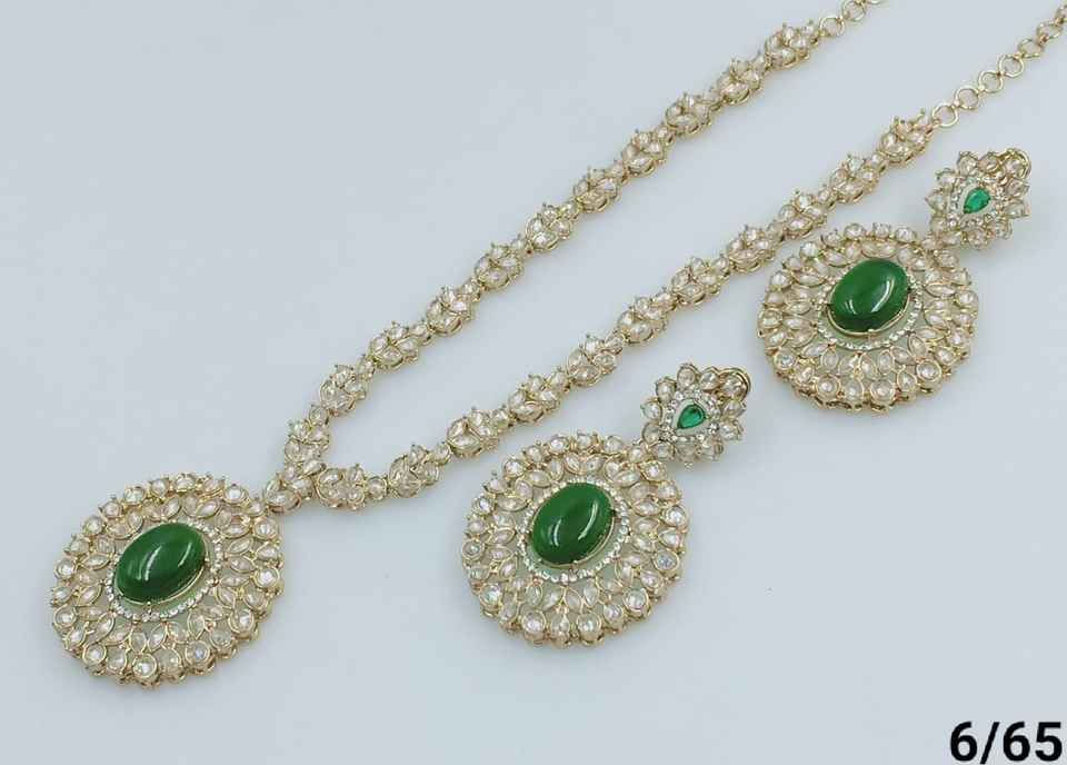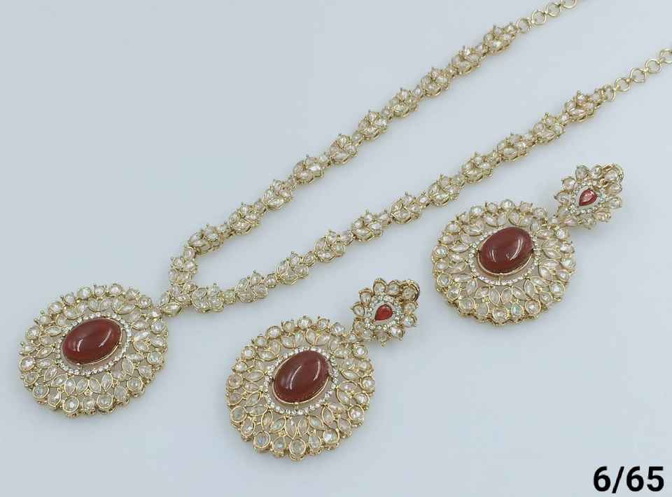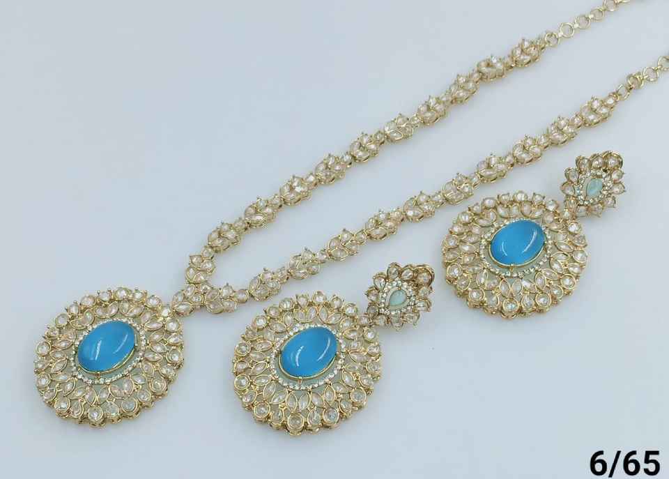 New Design Oval Shape Fancy Gold Plated Traditional Stone Kundan Studded Long Necklace Earring Mangtika Set&Jewellery Set Girl