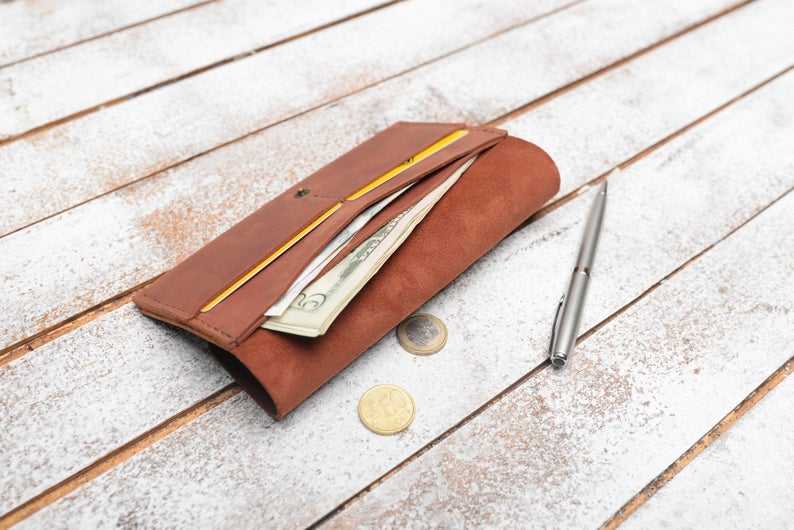 Women's Fashion Leather Long Wallet LWM-0267 Vintage Style Slim Leather Wallet Open Custom Logo Keyring Buckle Custom Packaging