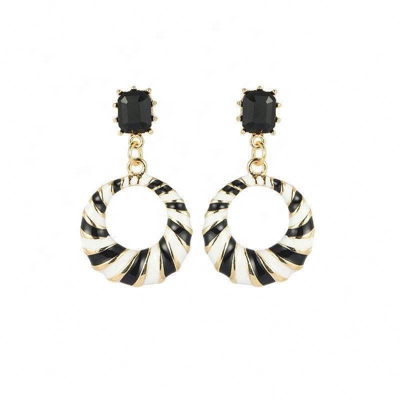 Fashion Leopard Print Gold Plated Zinc Alloy Women's Drop Earrings Black White Striped Accessories Big Circle Hoops Geometric