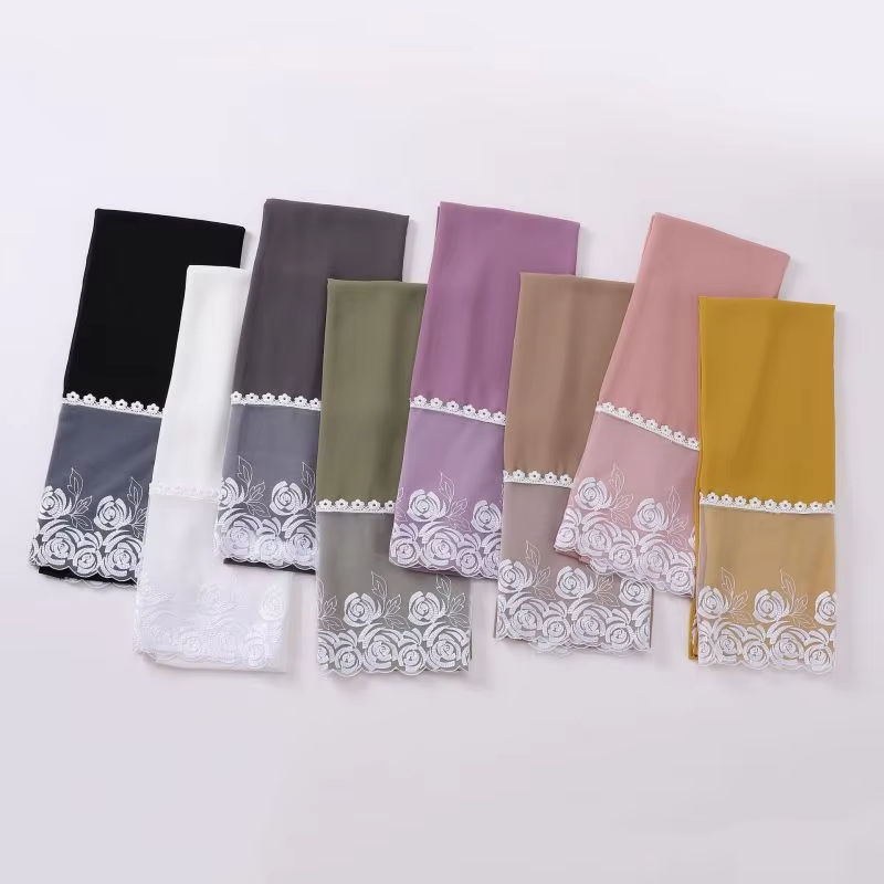 hijab,chiffon ,polyester,Lace Edge ,Embroidery