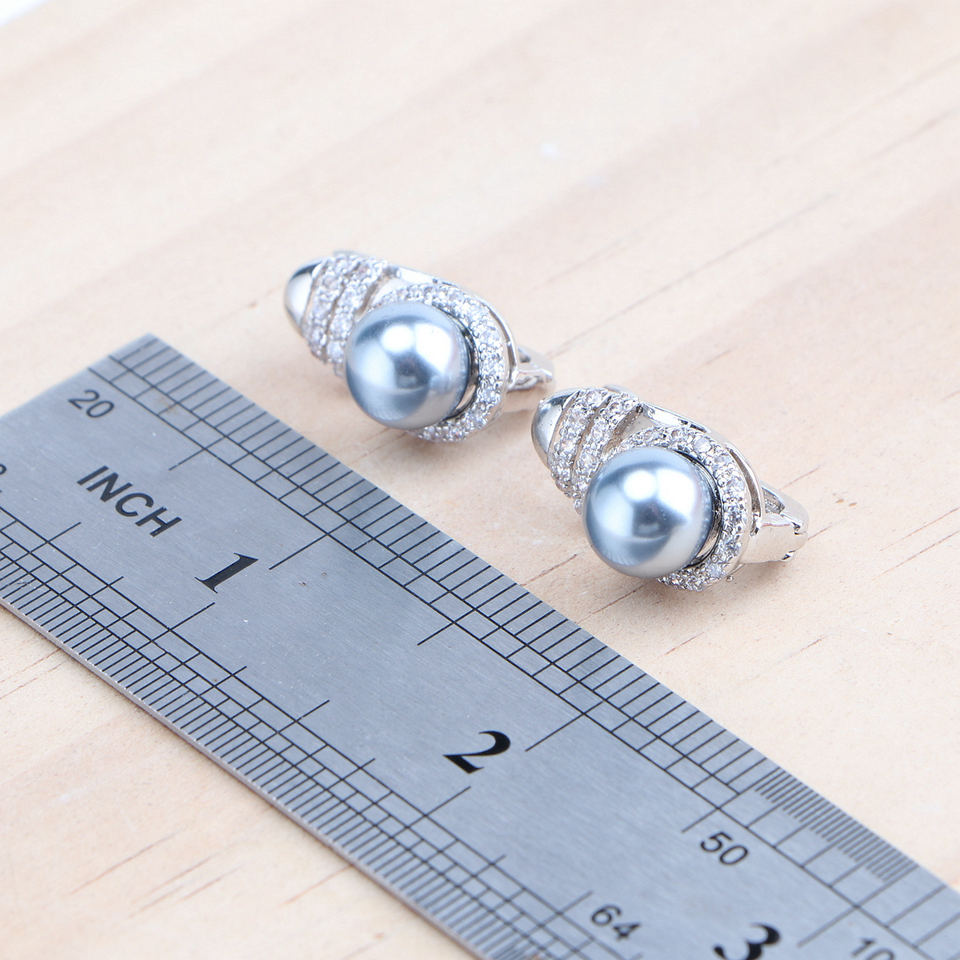 Wedding Grey Pearls 925 Silver Jewelry Sets for Women Bridal White Zircon Earrings Stones Ring Bracelet Pendant Necklace Set