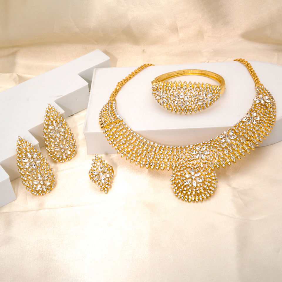 Fashion Luxury European Brazilian Gold Bracelet Earring Cubic Zirconia Big Necklace African Gold Bridal Jewelry Set