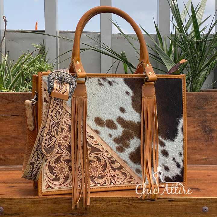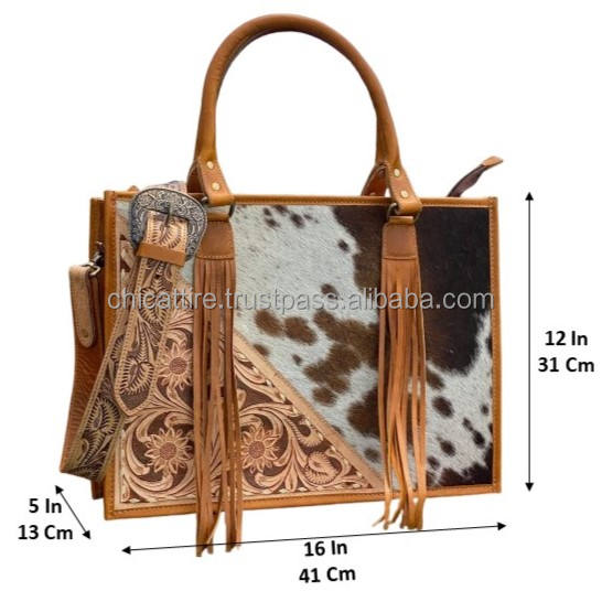 Product name:Hand Tooled Cowhide Leather Tassel Tote Bag