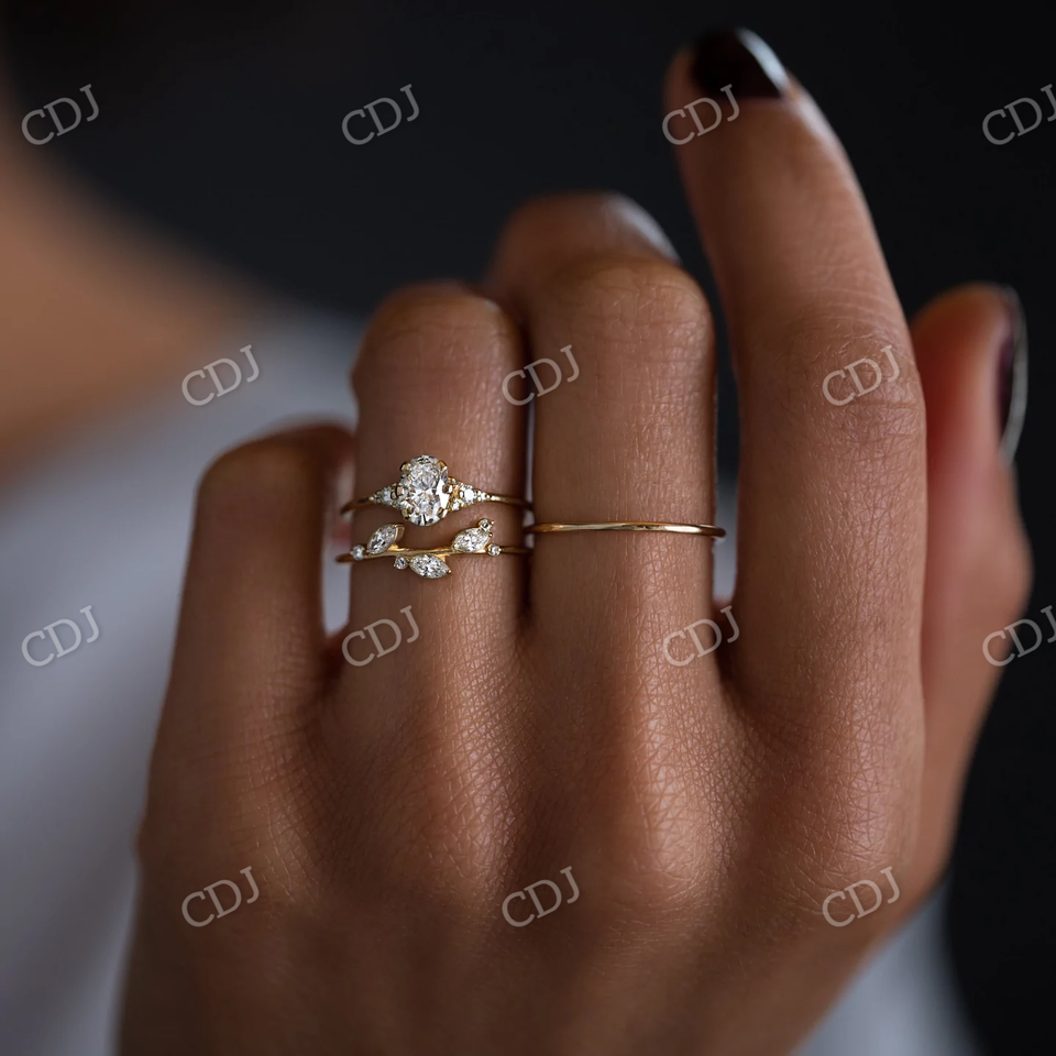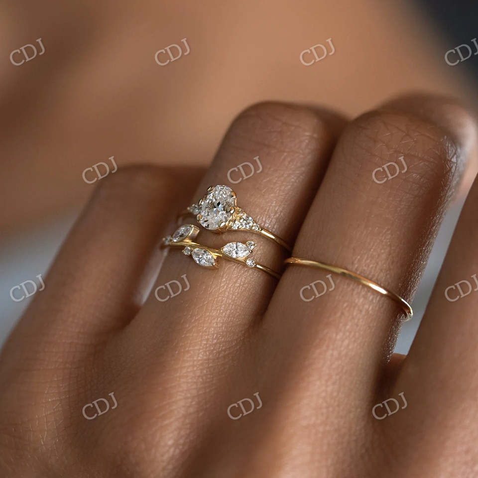 Fashion Luxury Oval Cut Bezel Setting Engagement Ring 14k Ladies Moissanite Stone 0.30CTW Georgian Wedding Ring Sets VVS GRA