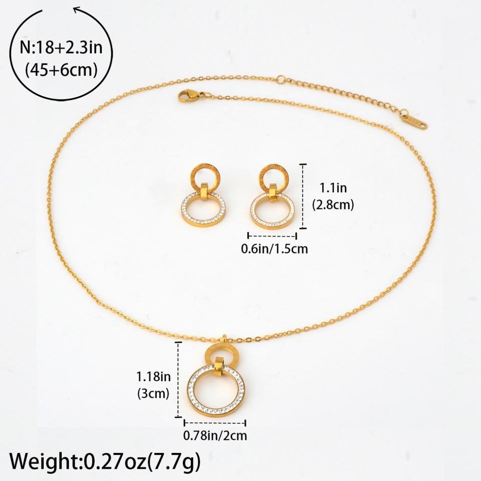 Fashion Luxury Wholesale 18K Gold Stainless Steel Roman Numerals Pendant Necklace and Earrings Set Women