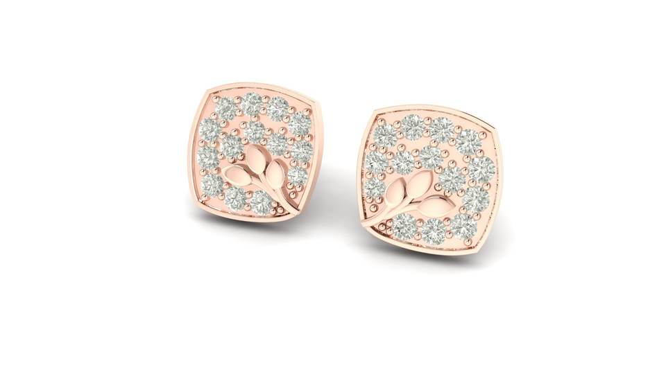 Fashion Luxury Women's Rose Gold Silver Plated Geometric Leaf Design Diamond Hoop Earrings GIA Certified