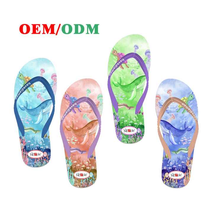 Fashion Marine Life Illustration Flip Flops Soft PE Rubber Beach Sandals Colorful Summer Slippers OEM ODM Factory Direct Supply