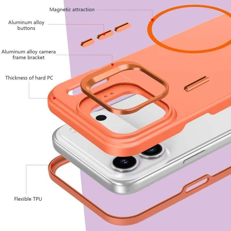 Fashion Matte Magnetic Phone Case for iPhone 17 11 12 13 14 15 16 Pro Max Plus With Hidden Metal Lens Bracket Shockproof Cover