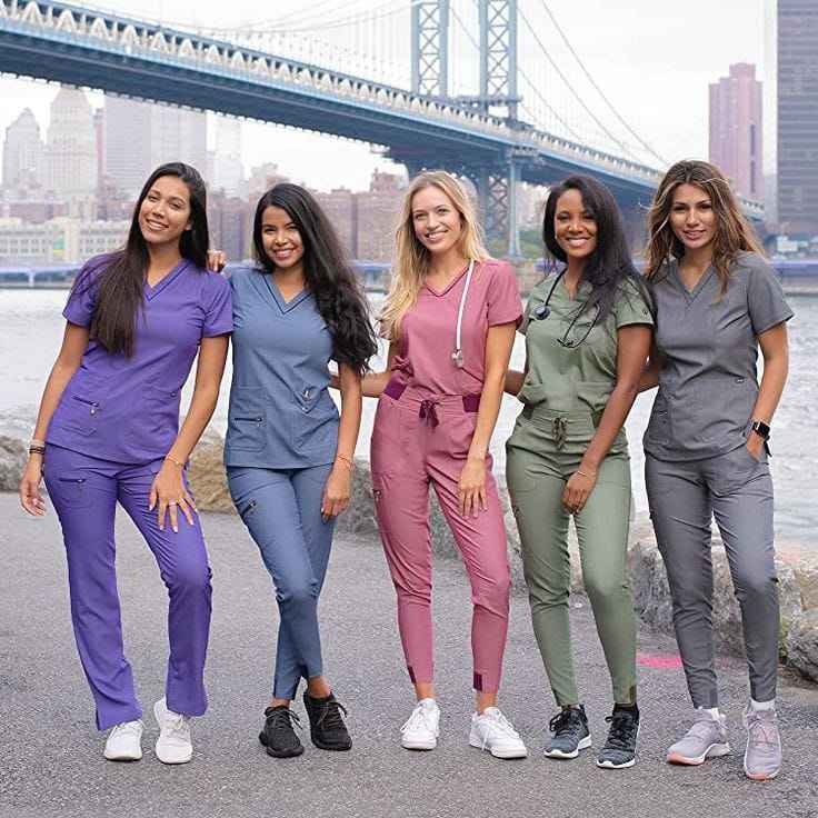 Fashion Medical Uniforms Women Scrubs Sets Woven Fabric Hospital Use Doctors Nurses Accessories