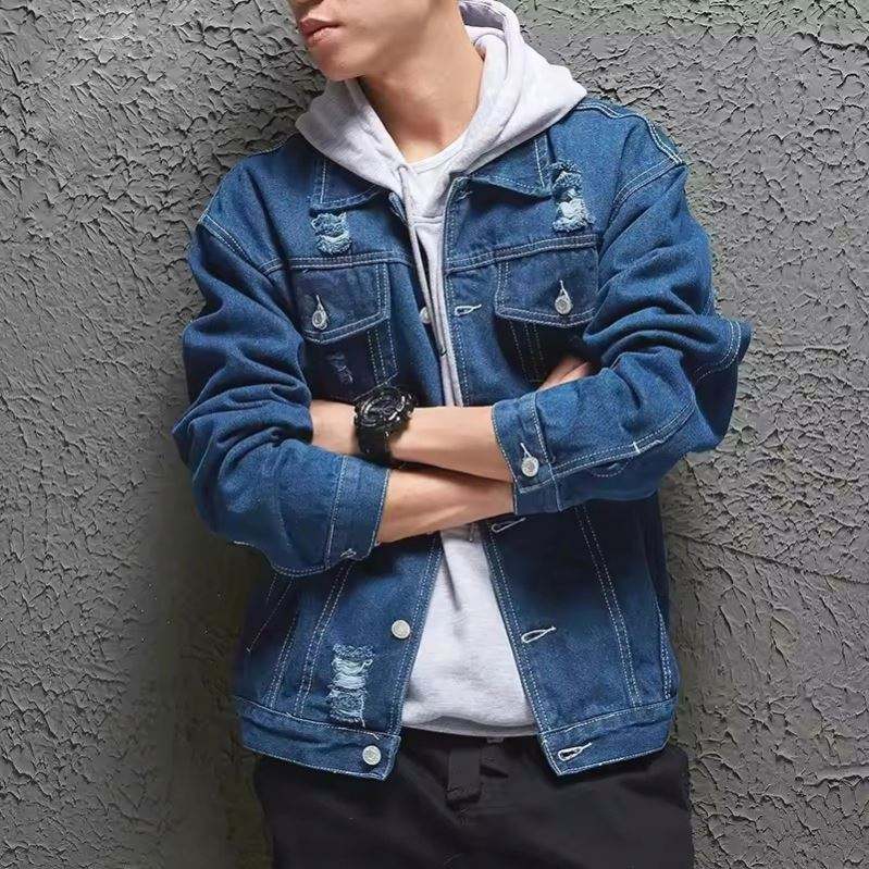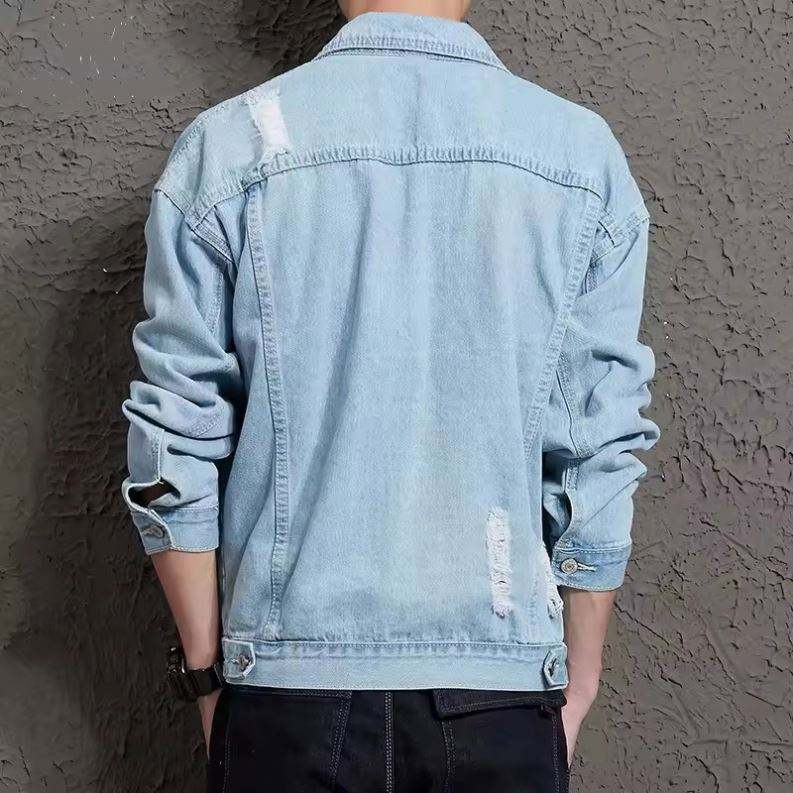 Fashion Men Jeans Jacket Casual Outdoor Turn Down Collar Stylish Blue Light Blue Colors Jackets