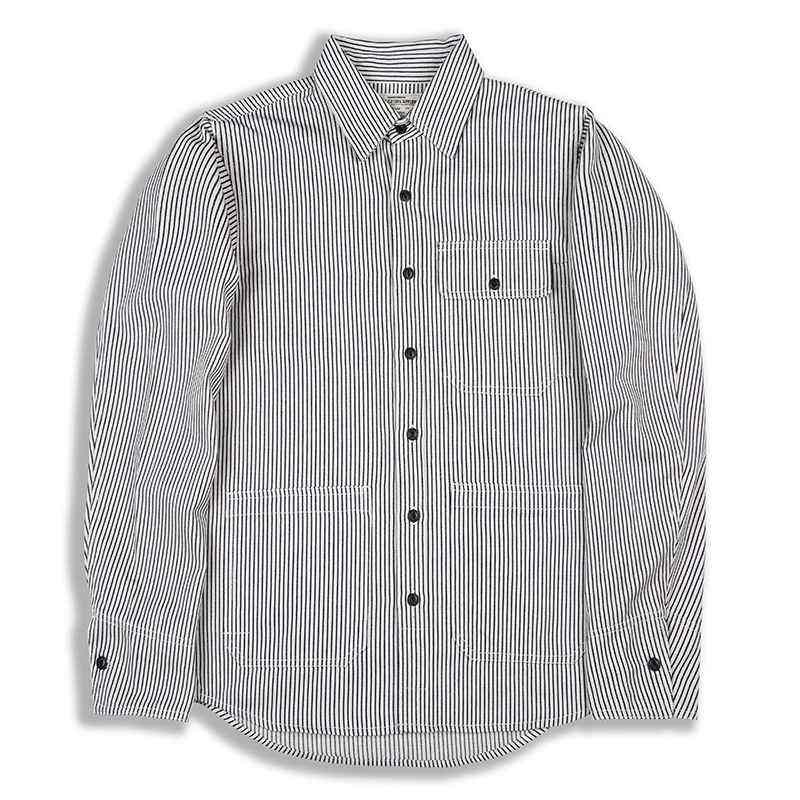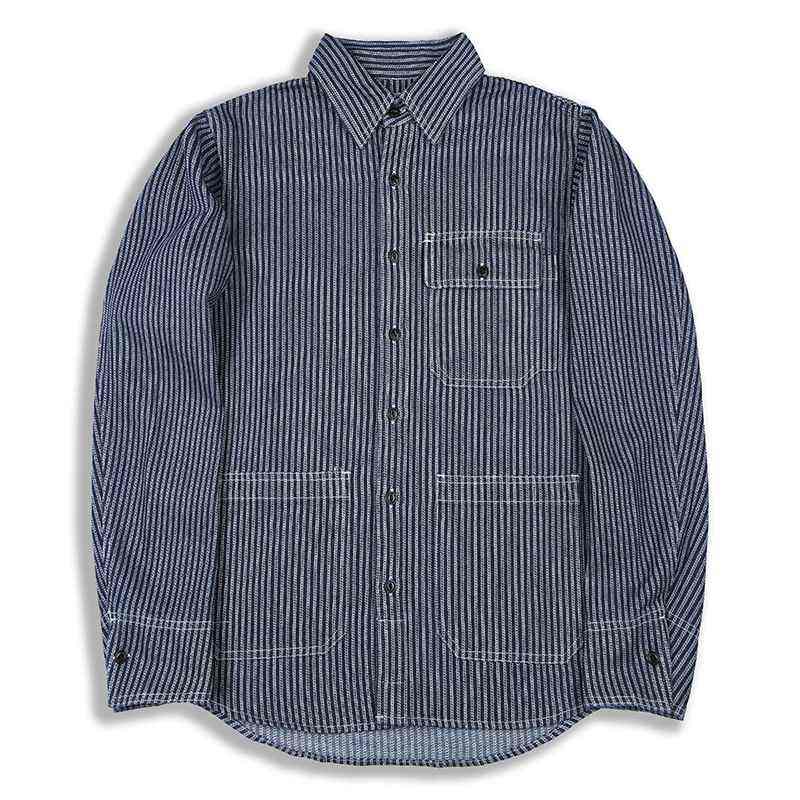 Fashion Men Organic Yarn Dyed Denim For Shirts Long Sleeved Multi Pockets Striped Pattern Breathable Anti Wrinkle Denim Shirt