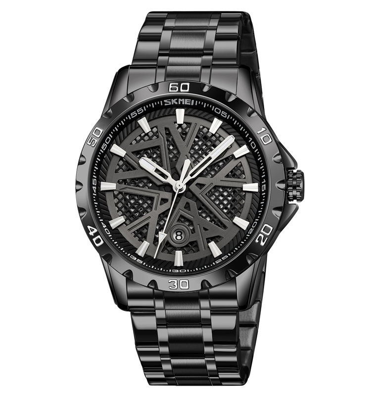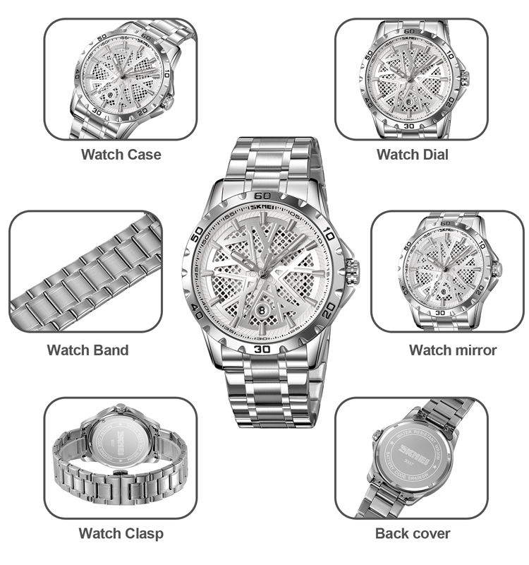 Fashion Men Quartz Golden Watch Stainless Steel Band Waterproof round Grid Dial Watch with Date Display High Quality