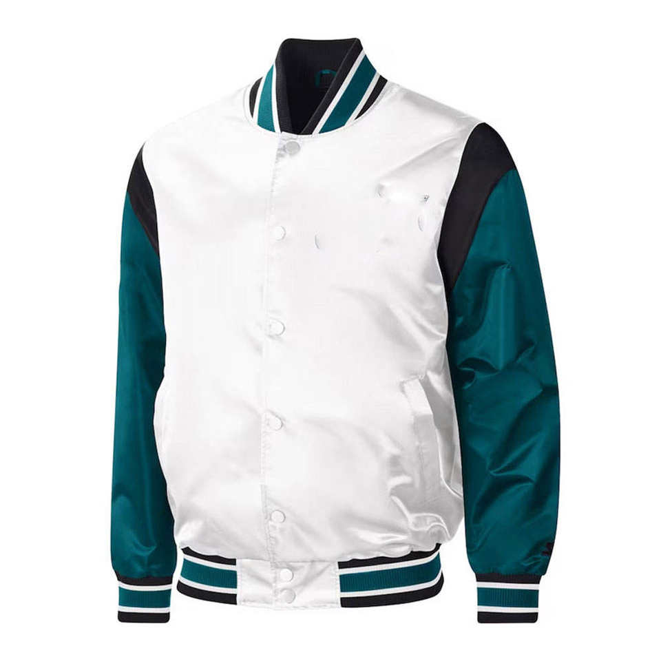 Custom Baby Satin Varsity Jacket Lightweight Waterproof Stand Collar Bomber Style Personalized Embroidery Front High Quality