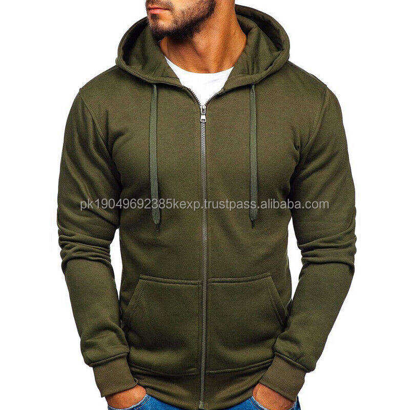Fashion Men's Casual Zipper Hoodies Sweatshirts Male Black Green Solid Color Hooded Outerwear Gym Fitness Hoodie Wholesale