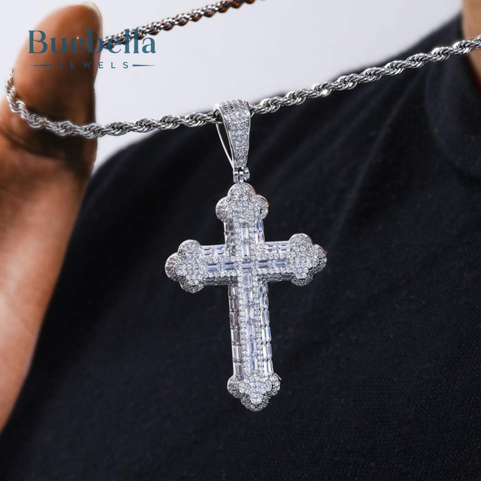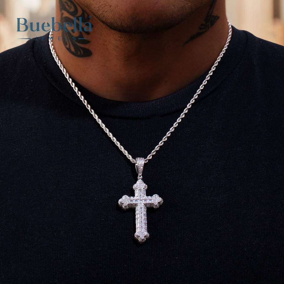 Fashion Men's Rose Cross Moissanite Pendant Necklace 925 Silver & 18K Gold Plated Stylish Iced out Design