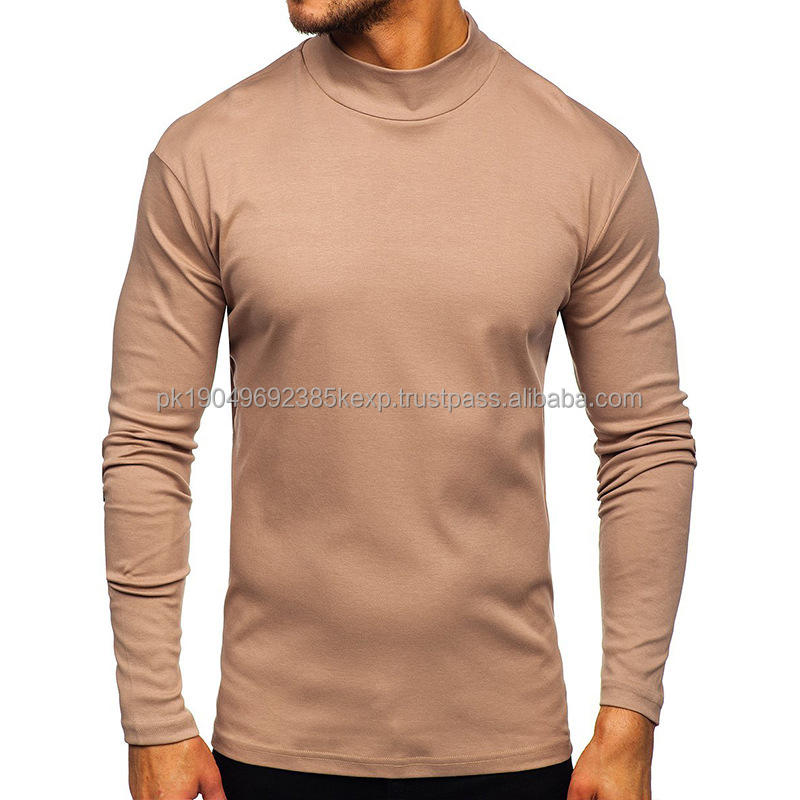 Fashion Men's Winter Casual Shirts 100% Cotton Fleece Fabric Breathable Quick Dry Custom Black O-Neck Top
