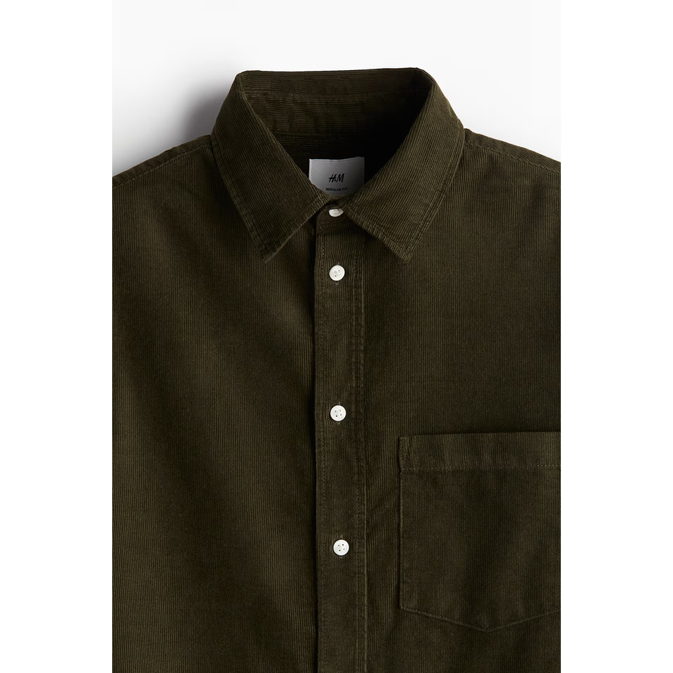 Slip fit long-sleeved empire Slim fit fantasy long sleeve Deep green geometric pattern shirt