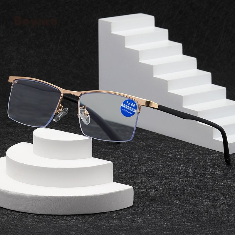 Fashion Metal Half Frame Presbyopia Eyeglasses Square Men Anti Blue Light Reading Glasses
