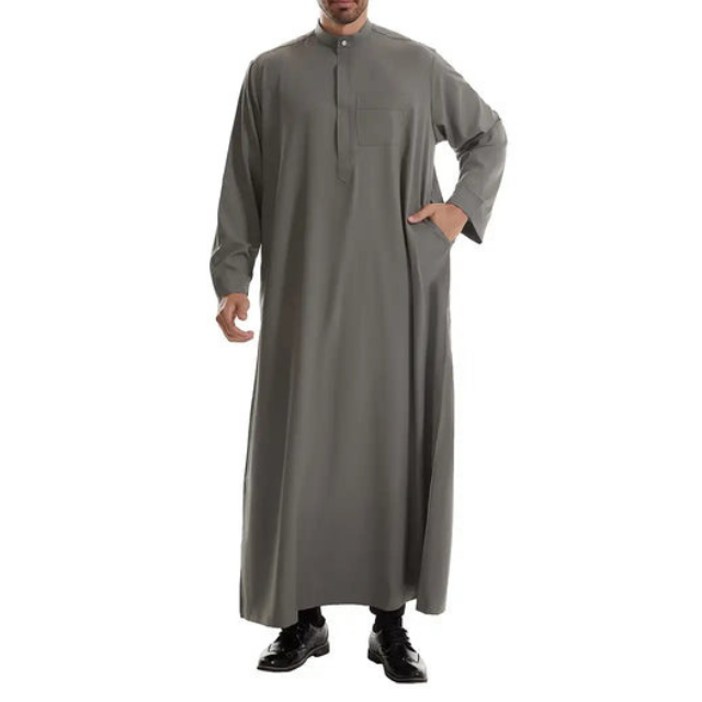 Fashion Middle East Thobe Muslim Men's Round Neck Islamic Clothing Solid Color Saudi Arab Jubba Thawb Men Dress for Ramadan Eid