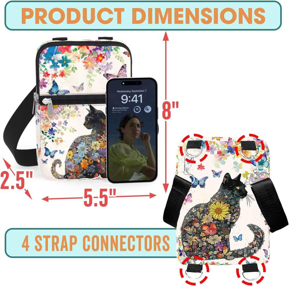 Fashion Mini Crossbody Phone Bag Adjustable Strap Waterproof Canvas Shoulder Bag with Zipper Closure for Mobile Phone