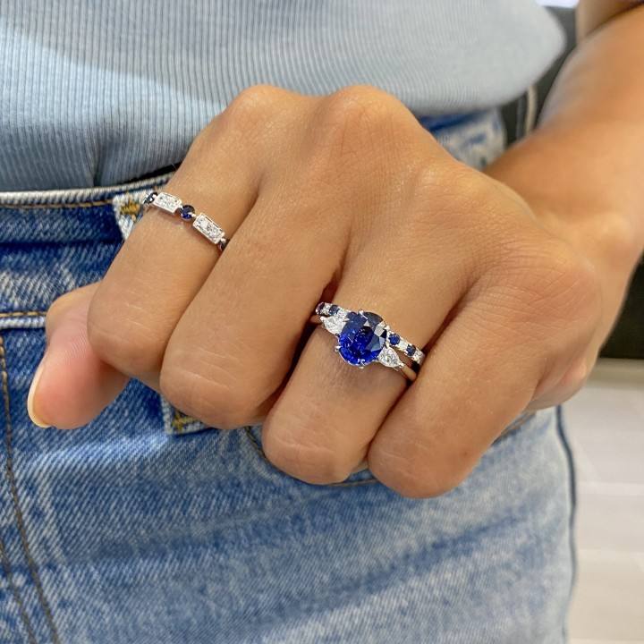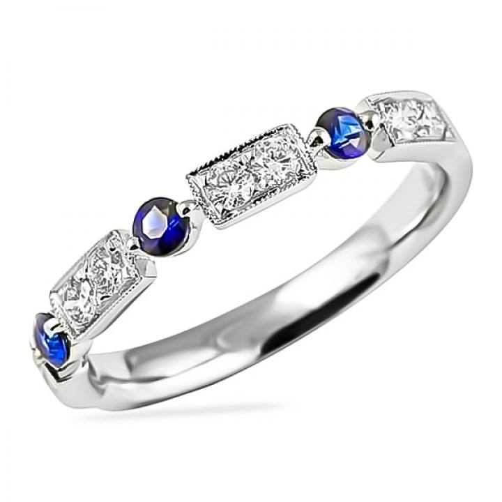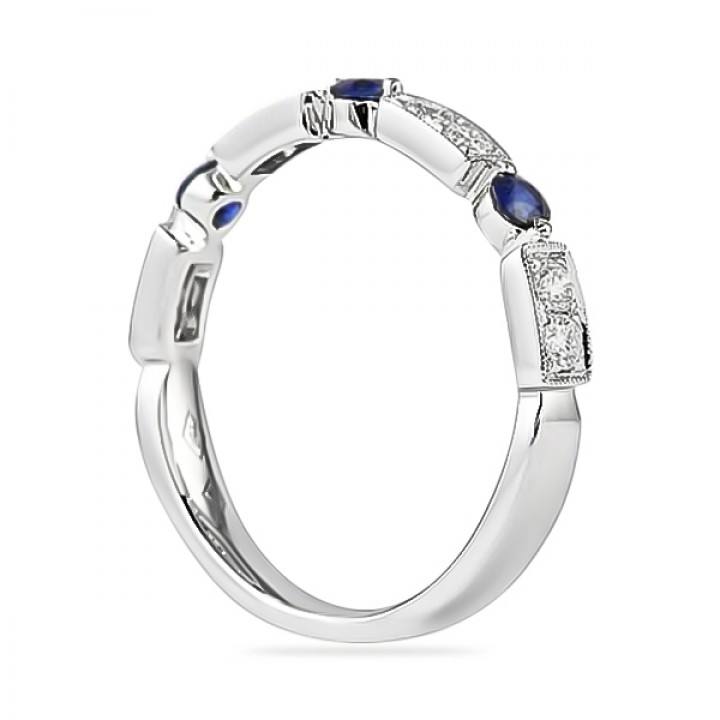 Fashion Minimalist Diamond Ring 14k White Gold Simulated Round Brilliant Cut Sapphire And Diamond Stackable Thin Band Ring