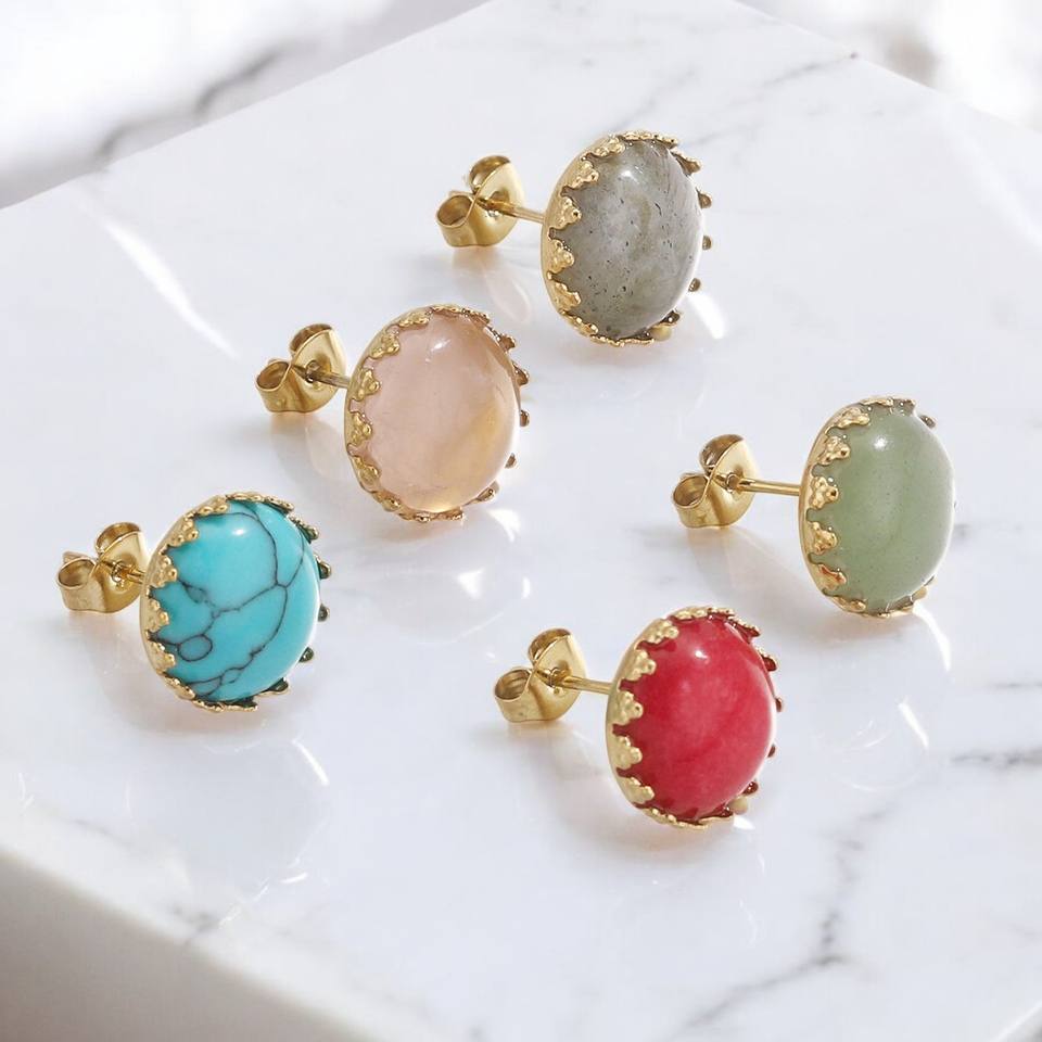 Fashion Moissanite Gemstone Studs Earrings-925 Sterling Silver Handmade Gold Plated 8mm Push Back Studs Jewelry for Wholesale