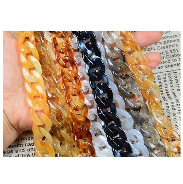 Fashion Multi-color 18K Gold Plated Chunky Chain Bracelet Stainless Steel Acrylic Resin Plastic Bracelets for Women