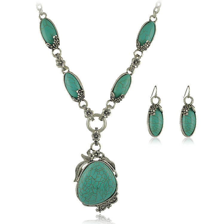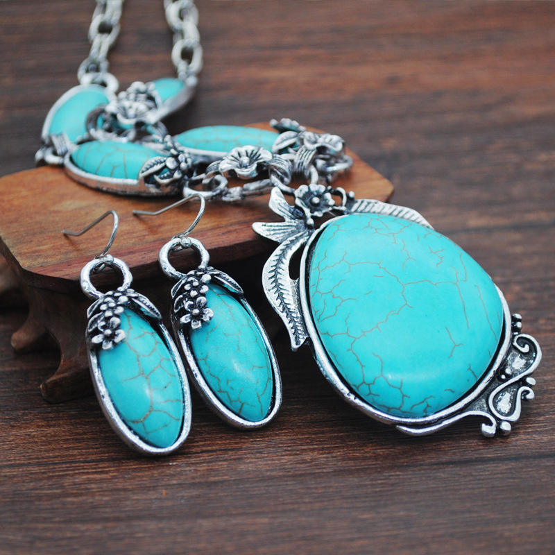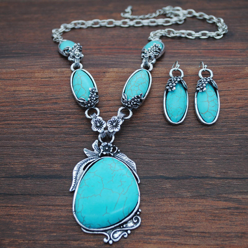 Fashion Multilayer Bohemian Irregular Western Indian Vintage Boho Turquoise Stone Necklaces Jewelry Set for Women