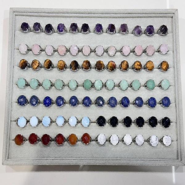 Fashion Natural Stone Crafts Gemstone Adjustable Jewelry Crystal Rings Women Handmade Classic Elegant Gift Daily Wear Platinum