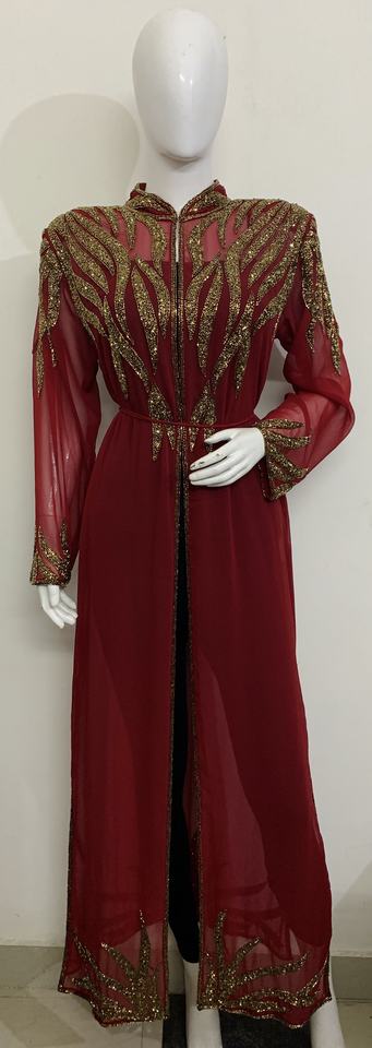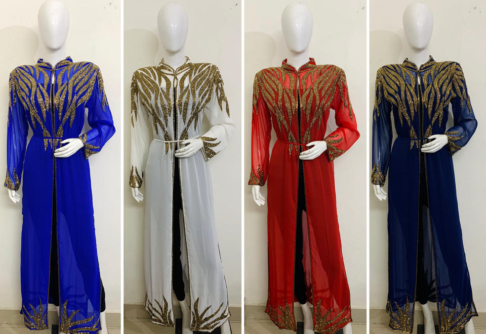 Latest Luxury Design Plus Size Georgette Abaya Hand Embroidery Work Front Open Floor Length Wedding Woman Clothing