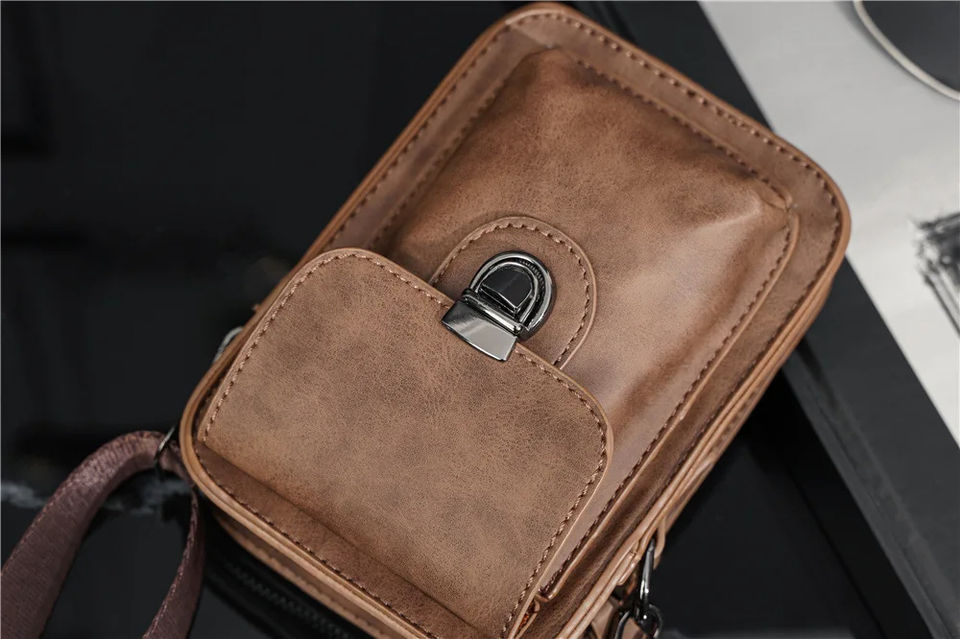 Fashionable Korean Style Men's Single Shoulder Messenger Bag Genuine Leather Large Capacity with Zipper Closure Reusable