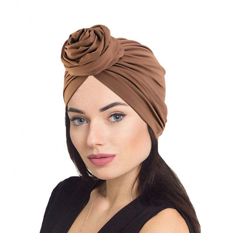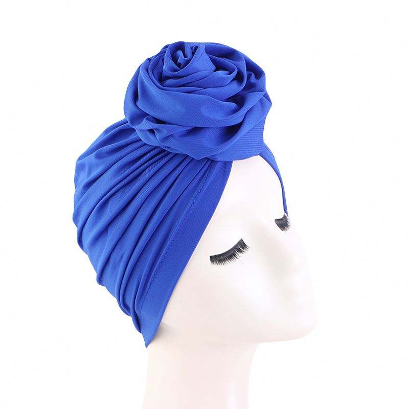 Fashion New Solid Top Knot Women's Turban Hat Pre-Tied Polyester Canvas All Season Casual One Size Fits Most with Flower