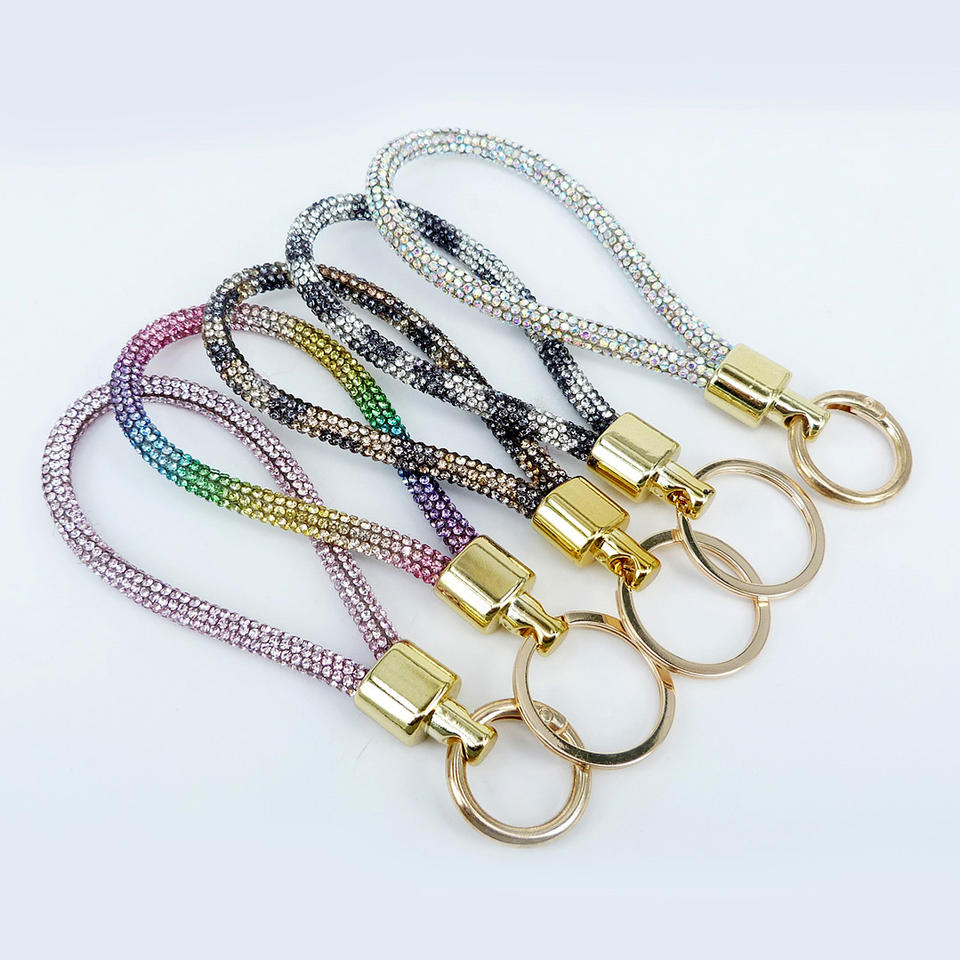 Fashion PU Woven Leather Rope Diamond-encrusted Car Key Chain Braided Rope Simple Bag Accessories Keychains With Rhinestones