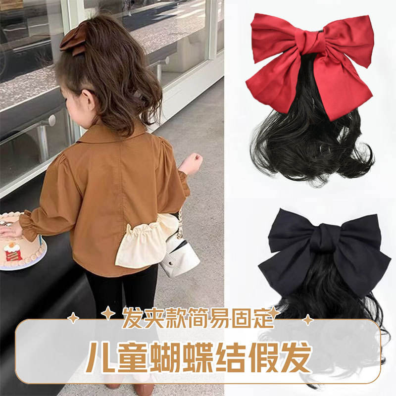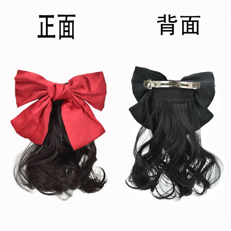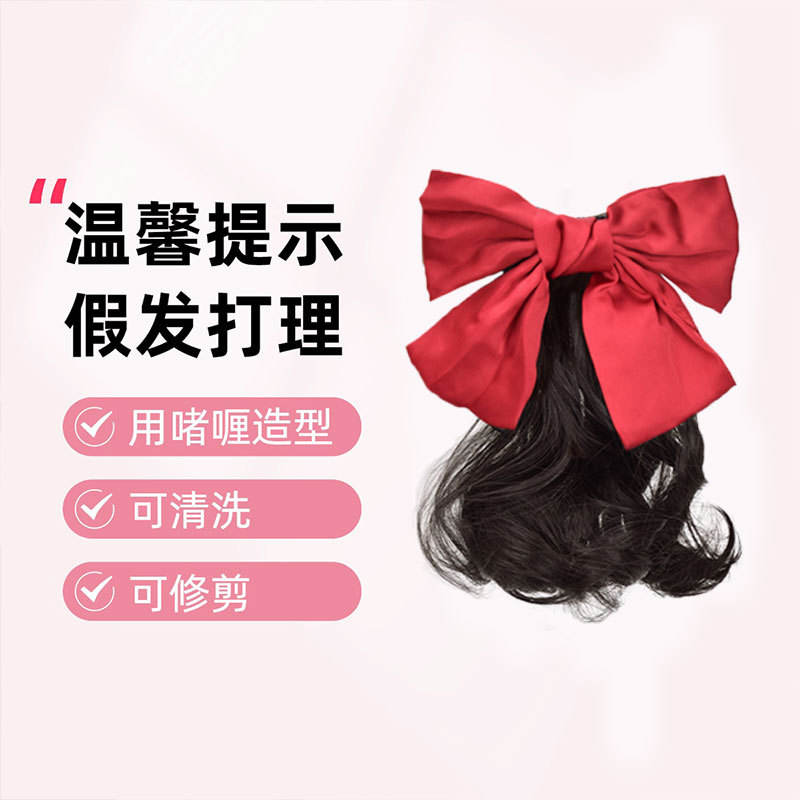 Fashion Ponytail Wig With Red Bow For Women Natural Style Fluffy Hair Clip Portable Travel Photography Hair Accessory