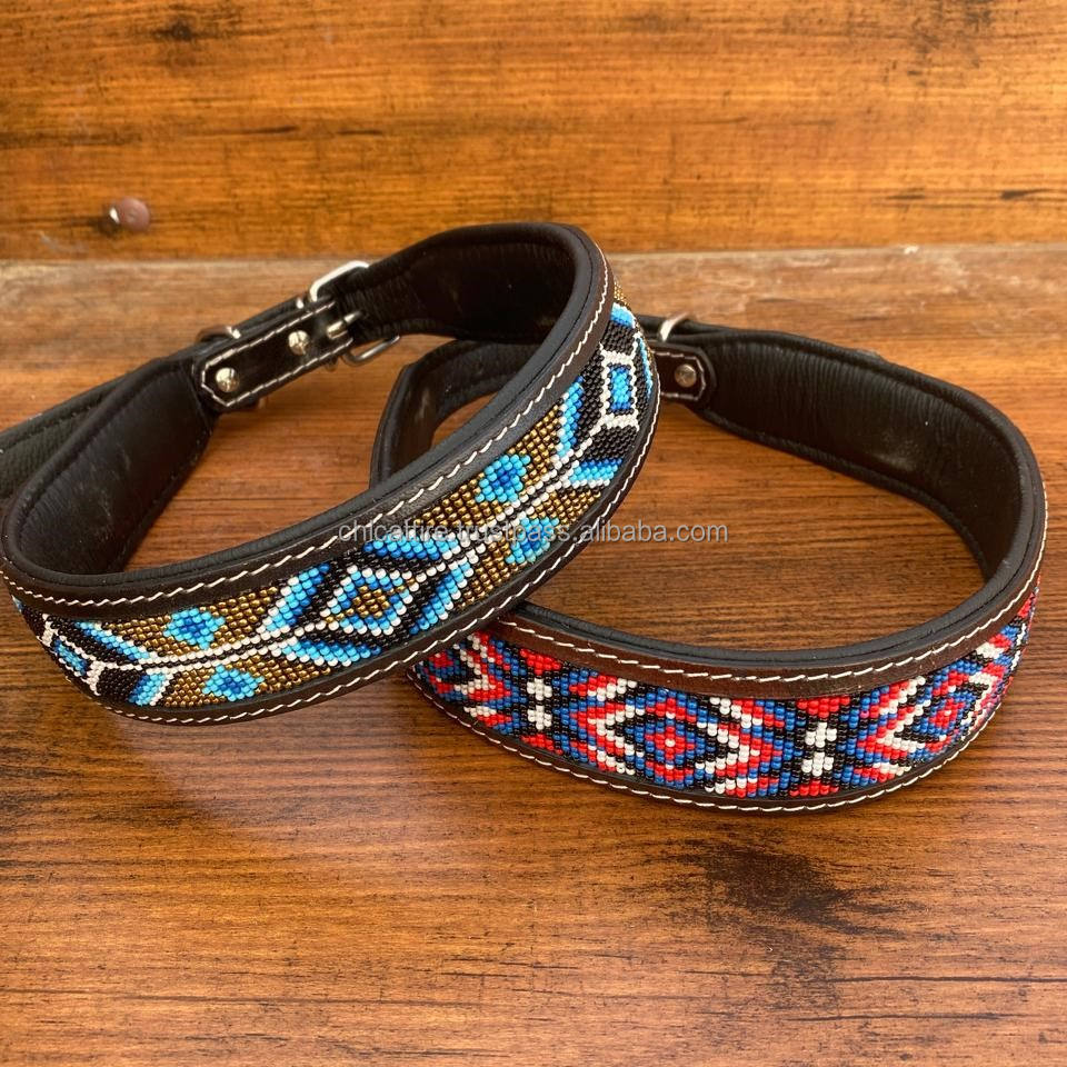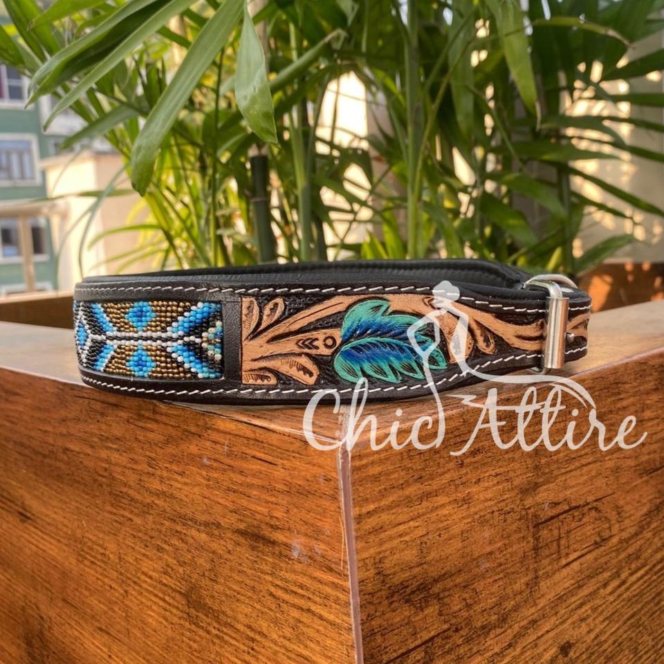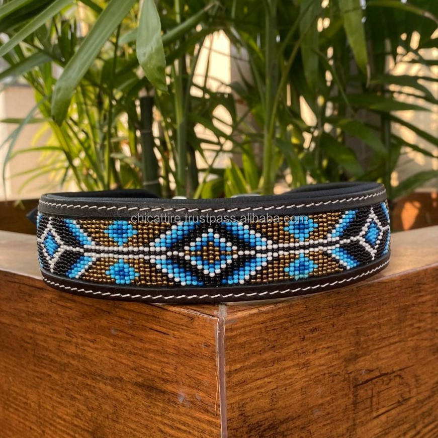 Product name:Hand Tooled Leather Beaded Dog Collar
