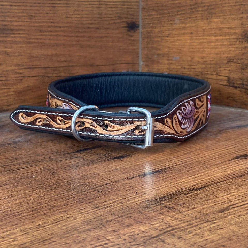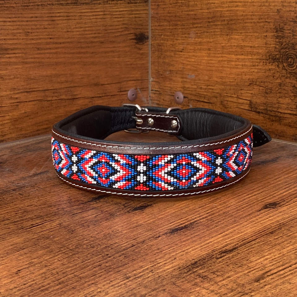 Product Name:Hand Tooled Leather Beaded Dog Collar