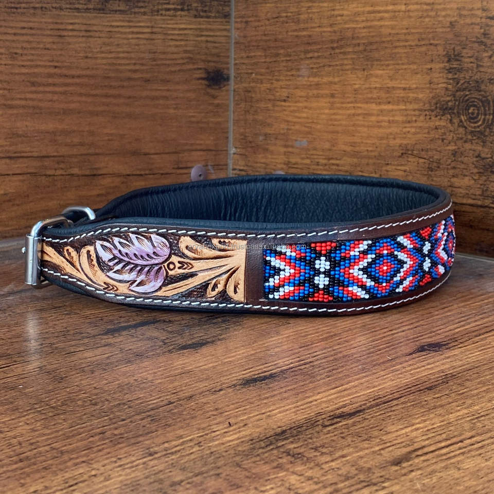 Product Name:Hand Tooled Leather Beaded Dog Collar