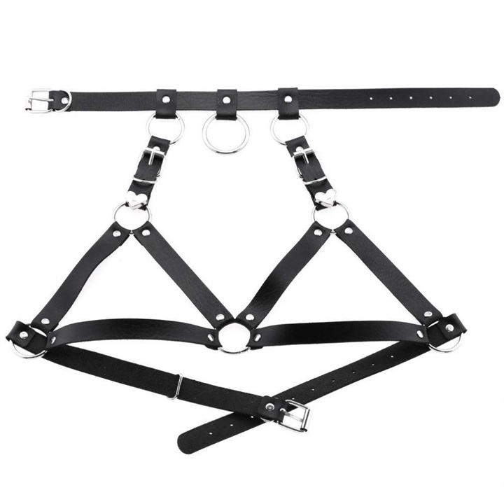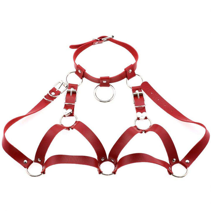 Fashion Punk Harajuku Leather Collar Harness Belt Body Bondage Cage Bra Adjustable Chest Straps Heart Belt