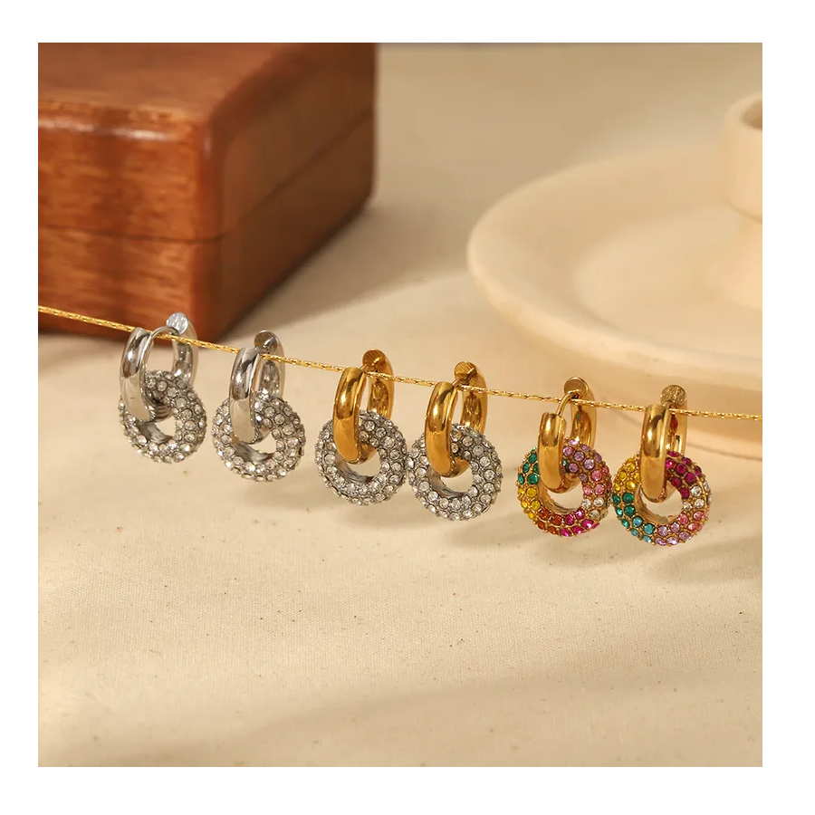 Fashion Rainbow Style Women Earings Zircon Stud Earrings Hoop Dangler 14k Gold Jewelry Wholesale Popular Girl Gifts From India