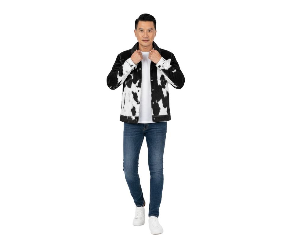 Fashion Real Genuine Cow Hair Hide Leather Jacket Black White Western Style Premium Luxury High Quality Leather Custom Made New